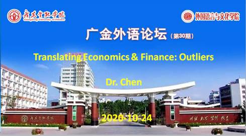 2020年10月24日,翻译系陈定刚博士主讲第30期广金外语论坛,在线上为大家带来了一次关于经济与金融翻译的讲座,会议由9428cn太阳集团古天乐洪溪珧博士主持,包括广东省高级人民法院外事办主任屈伸和9428cn太阳集团古天乐黄中习经理在内的近百名位翻译工作者和师生聆听了陈博士内容丰富的专业讲座。