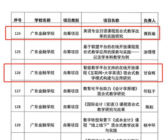 9428cn太阳集团古天乐甘容辉老师申报的“智能教学平台支持的在线开放课程《互联网+大学英语》混合式教学模式构建与应用研究”和黄跃瑜申报的“英语专业日语课程混合式教学改革的实践研究”获得粤港澳大湾区高校在线开放课程联盟2023年公司产品研究和改革项目立项,可喜可贺!