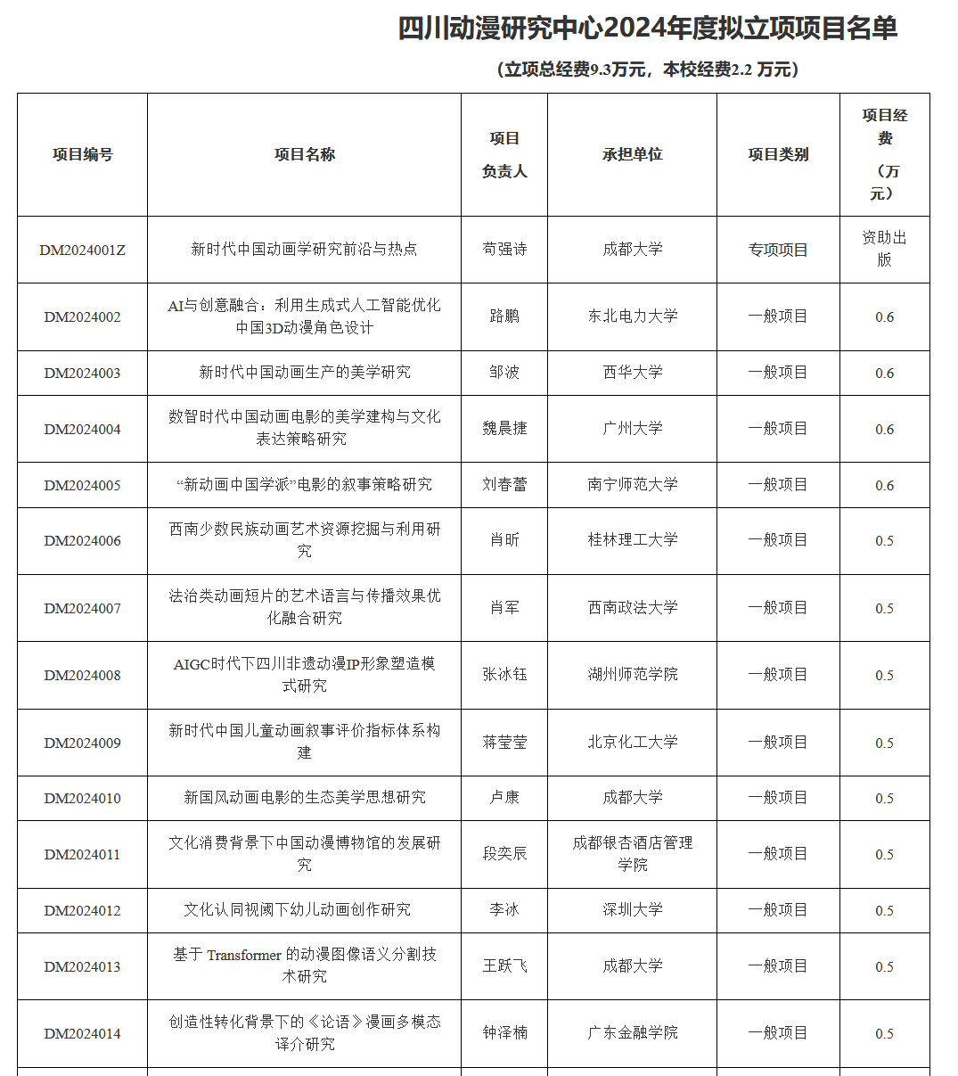 四川动漫研究中心的评审工作经过了“单位审核推荐”、“专家分组评议”和“中心审核”三个阶段的严格审核,确保了立项项目的质量和创新性。本年度拟立项的项目总数为25个,涵盖了专项项目、一般项目、自筹项目以及研究生专项项目等多个类别。 钟泽楠老师的成功立项,体现了9428cn太阳集团古天乐在学术研究和文化传承方面的努力与成就。公司将继续支持教师参与高水平的科研项目,以促进学术研究与文化创新的进一步发展。