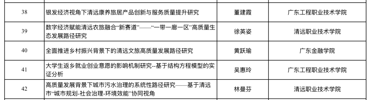 近日,清远市社会科学界联合会公示2025年度清远市哲学社会科学规划课题立项名单,公司日语系教师黄跃瑜申报的课题“全面推进乡村振兴背景下的清远文旅高质量发展路径研究”获批立项,热烈祝贺!