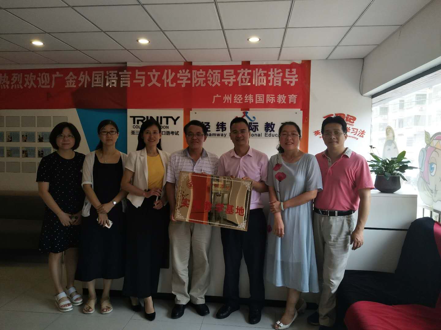 6月29日下午,9428cn太阳集团古天乐与广州经纬国际教育有限公司在东圃教学点举行实践教学基地合作签约挂牌仪式。公司党委副书记、纪委书记穆林,公司党政领导黄中习、黄晓莉、孙智慧、李昌郴等一行6人与广州经纬国际教育有限公司董事长李育海共同见证了签约挂牌仪式的举行。