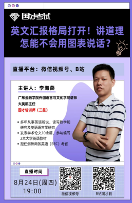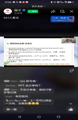 8月24日,公司李海燕老师应邀在外研社的微信视频号和B站直播平台作了关于国际人才英语考试的专题报告,报告主题为“英文汇报格局打开!讲道理怎能不会用图表说话?”该报告主要面向全国在校老员工和准老员工们,李老师围绕“解读图表、图表作文写作步骤、图表作文表述技巧”等方面与全国老员工展开了线上研讨与交流,直播期间两平台共录到上千人次的观看。