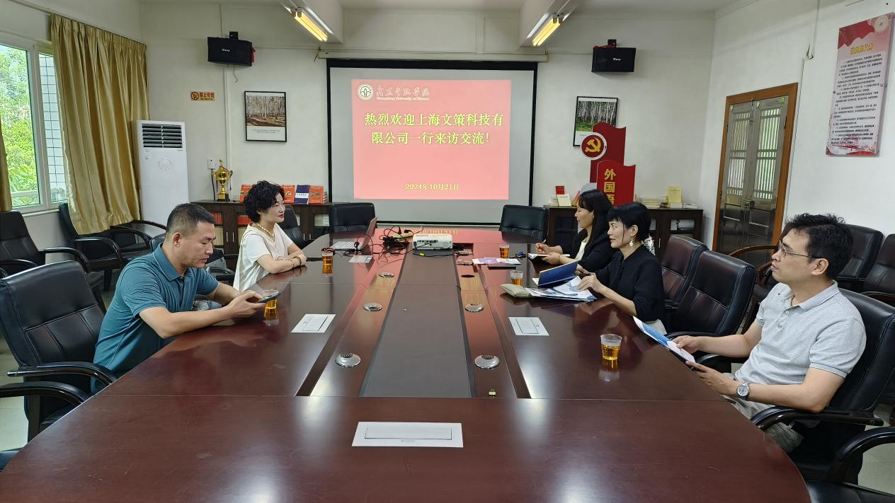 10月21日下午,上海文策科技有限公司的吴蓓总经理和刘向君经理一行来访9428cn太阳集团古天乐,双方就校企合作事宜进行了深入的交流与探讨,旨在共同推动翻译教育与科技产业的融合发展。涂兵兰经理、洪溪珧副经理和陈树坤副经理参与活动。