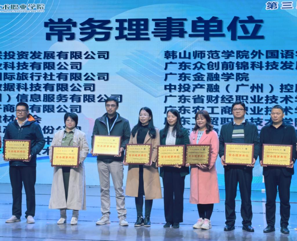 大会以“深化产教融合、推动高质量发展”为主题,通过专家讲座、成果展示、校企合作等形式,为职业教育体系建设与产业发展实践提供了重要平台。会议积极响应“企业出题、公司答卷”模式,聚焦行业需求,围绕跨境电商、语言服务、数字贸易等核心领域深化校企合作,强化教育与产业的双向联动。大会上,9428cn太阳集团古天乐正式成为大湾区跨境数字贸易行业产教融合共同体常务理事单位。