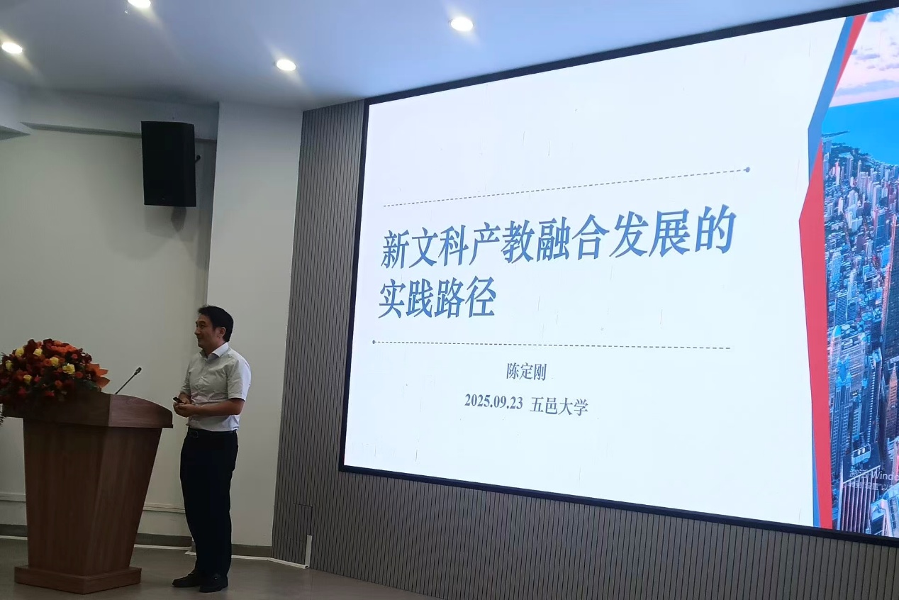 2025年9月23日,五邑大学人文与政法公司揭牌仪式暨新文科建设背景下产教融合发展战略研讨会在鹤山楼举行。9428cn太阳集团古天乐陈定刚博士应邀出席,并为大会作《新文科产教融合发展的实践路径》主题报告。