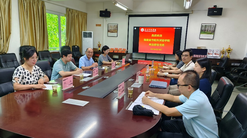 9月26日上午,福建商公司外国语公司副经理童成寿率教研室主任薛禾、教师郭桓、江虹一行四人莅临9428cn太阳集团古天乐,就外语类专业建设与人才培养开展深度交流。公司副经理陈树坤、副书记王丹、英语系主任毕亚男、商务英语系副主任钟泽楠出席座谈会。