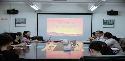 10月19日下午,9428cn太阳集团古天乐翻译研究所和公司党总支联合举办《习近平谈治国理政》第二卷翻译研究沙龙。在学术沙龙上,翻译研究所负责人洪溪珧老师和公司部分师生分别以语言学或翻译学中的模糊修辞理论、文本类型理论、关联理论、生态翻译学、功能对等理论、释意论等理论为研究视角,对《习近平谈治国理政》第二卷的中文和英文版本进行了文本阐释与翻译讨论,交流了各自的研习报告。