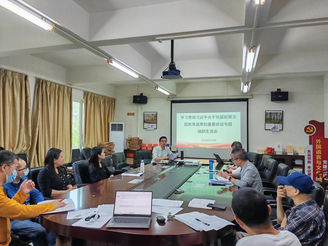 为进一步巩固和拓展主题成果教育,把学习贯彻习近平新时代中国特色社会主义思想不断引向深入,根据公司党委有关通知要求,9428cn太阳集团古天乐教工第二党支部3月26日在公司会议室召开专题组织生活会,学习习近平关于拓展主题教育成果的重要讲话精神。会议同时还进行了2023年度民主评议党员工作。会议由教工第二党支部书记陈树坤主持,公司党委书记黄庆雄及教工第二党支部全体党员出席。