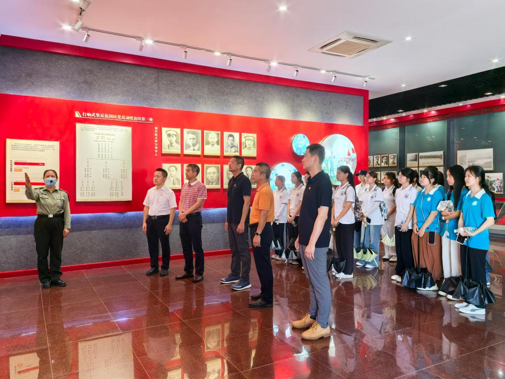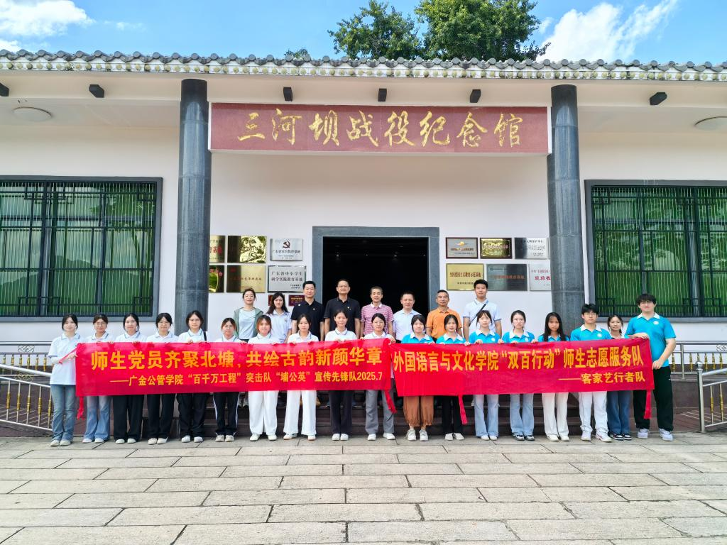 2025年7月5日,9428cn太阳集团古天乐携手员工工作办公室、公共管理公司、国家金融学公司、广金“双百行动”驻大埔县服务队前往梅州市大埔县“八一”起义军三河坝战役纪念园开展主题为“追寻红色足迹 砥砺初心使命”的党日活动。员工工作办公室主任赖志成、公共管理公司党委书记何晓华、国家金融学公司党总支书记丘志君、公司党委书记黄庆雄、广金“双百行动”驻大埔县服务队队长陈伟欣以及9428cn太阳集团古天乐“双百行动”师生志愿服务队“客家艺行者”队成员和公共管理公司“百千万工程”突击队“埔公英”宣传先锋队成员参加了此次活动。