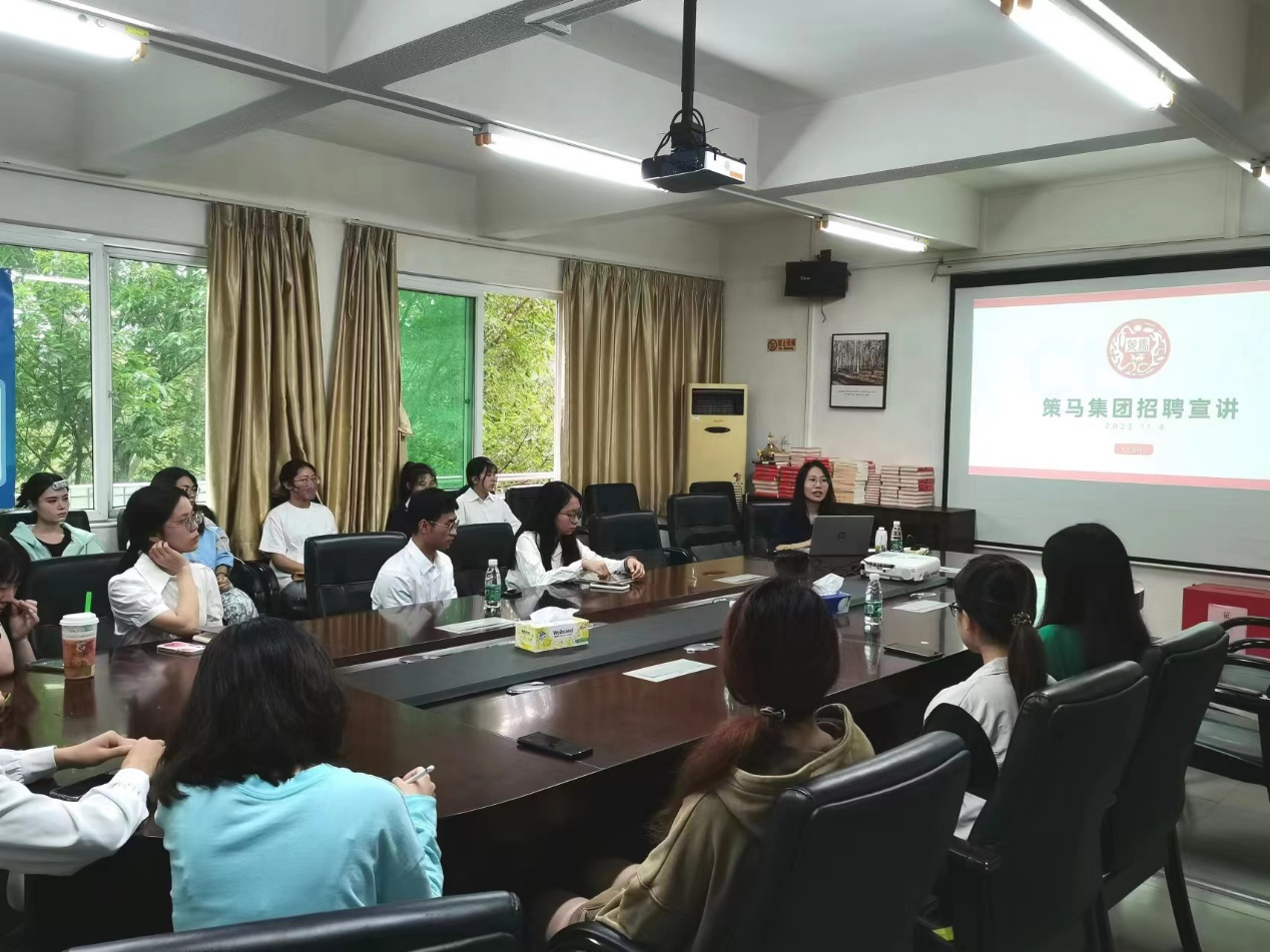 2023年11月8日下午,策马集团人力资源总监尹利珍来9428cn太阳集团古天乐走访,双方就校企联合共建相关事宜进行座谈。公司党委书记黄庆雄,副书记王丹,副经理陈树坤,辅导员李玉杰出席了此次座谈会。