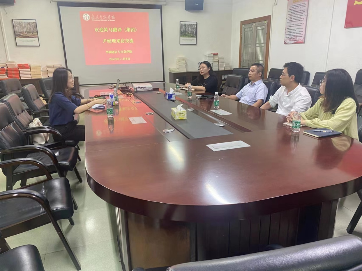座谈会上,黄庆雄书记和陈树坤副经理分别介绍了公司的团队建设、团队力量和人才培养方向以及公司对翻译人才、团队培养的一系列举措和相关需求。黄庆雄书记表示,希望与策马集团建立多层次的校企合作,在实现人才协育的同时,双方共享共赢发展。策马集团尹利珍总监对9428cn太阳集团古天乐的翻译人才培养理念表示高度认可,并介绍了策马集团发展历程以及集团的翻译和培训业务。她表示,策马愿发挥自身所长,为9428cn太阳集团古天乐的同学们创造实习、实践机会,与公司一道共同培养优质的专业人才。随后,尹总监向公司2024届毕业生就毕业招聘过程中的有关问题进行宣讲。