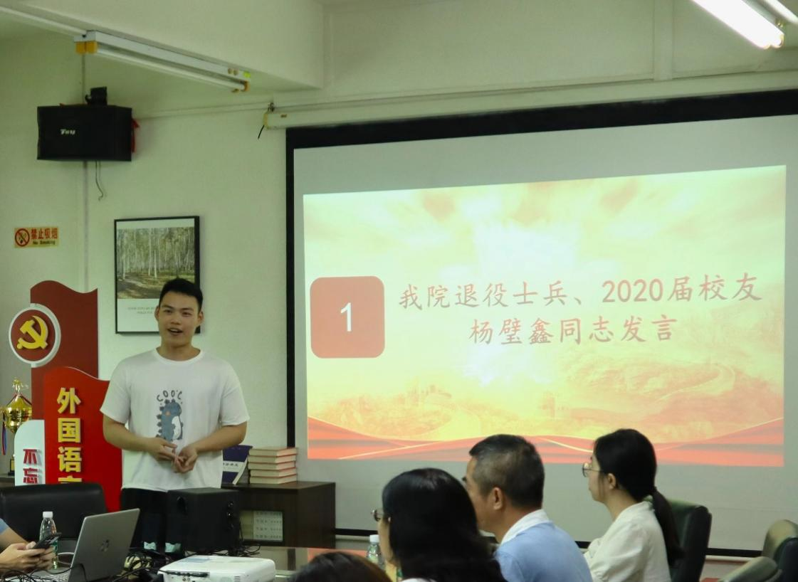2016级杨壁鑫谈到,当兵不仅能够锻炼意志,更能在艰苦的环境中实现自我价值。他结合自身经历,为同学们分享了退役士兵考研的优惠政策,为准备考公、考研的同学们提供了宝贵的建议。