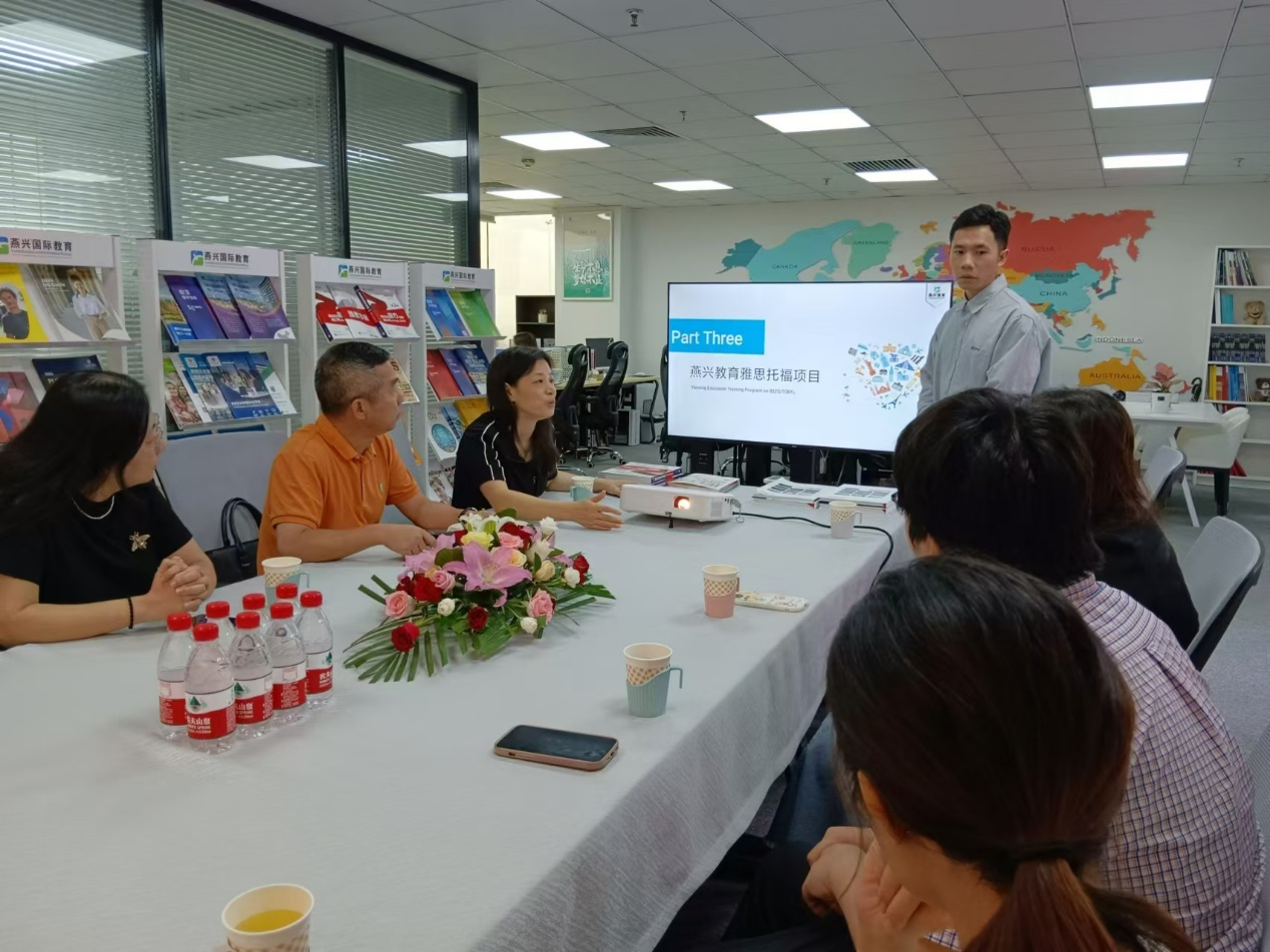 黄庆雄书记一行在燕兴国际教育集团董事长张小燕的陪同下,参观了公司的办公环境,并详细了解了公司的发展历程、教育理念及人才培养模式。