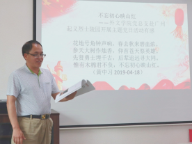 颁奖仪式伊始,黄晓莉做开场发言,表示今年恰逢建党一百周年,中国共产党取得的伟大成就,是革命先辈们用热血和生命谱写的爱国华章,在这神圣隆重的日子里,外院师生不忘初心颂党恩,扬帆逐梦迎百年。她对49位外文学子积极参与建党百年征文给予充分肯定,同学们的作品有中文赞颂,有英文散文,内容充实、文字生动、感情真挚,展现了公司学子深厚的爱国爱党精神和家国情怀。并激励大家深入学党史,知党恩,永远跟党走,砥砺前行,取得新进步,再创新业绩。