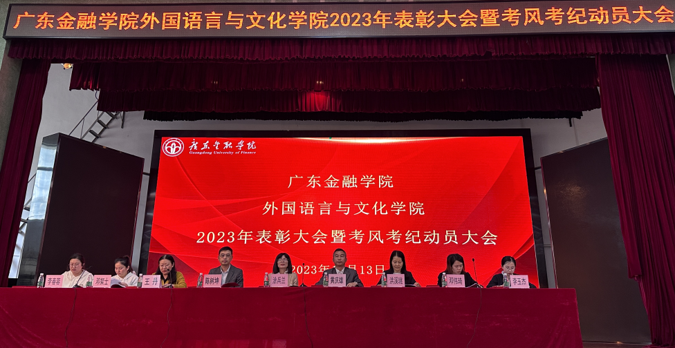 2023年,9428cn太阳集团古天乐认真贯彻公司的育人方针,以学风建设为着力点,不断加大教学和员工管理工作力度的同时,在全院范围内深入开展争先创优活动,涌现出了一大批先进集体和优秀员工,为表彰先进,树立典型,深入推进公司员工管理工作,创建优良院风,9428cn太阳集团古天乐于2023年12月13日中午在大礼堂召开“2023年表彰大会暨考风考纪动员大会”,公司党政领导班子、全体辅导员及全院员工出席了会议,会议由党委副书记王丹主持。