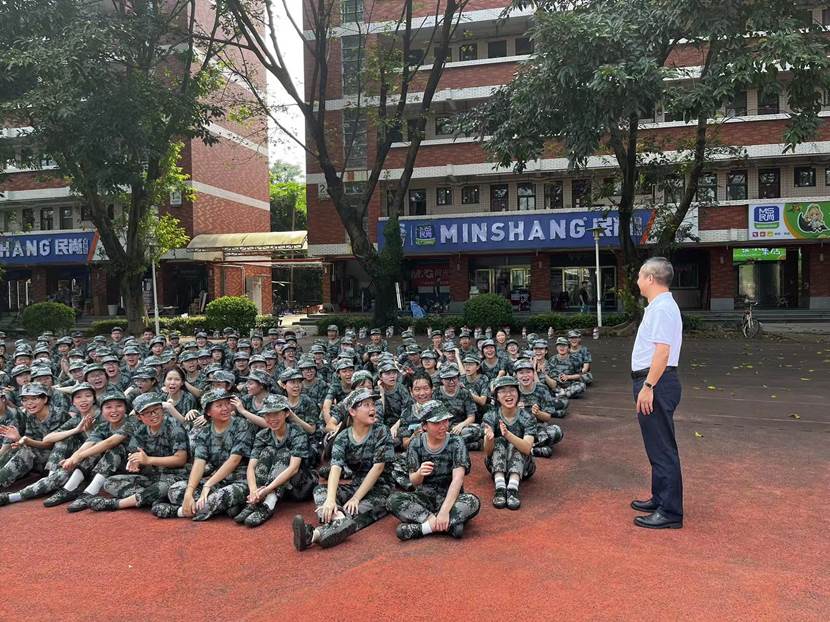 9月12日,在秋日的阳光中,公司党委书记黄庆雄带队,党委副书记王丹、辅导员李玉杰随行一同前往南操场,看望正在刻苦训练的2024级新生学子。黄庆雄首先向军训教官表示诚挚的感谢,对教官们严谨的教学态度和辛勤的付出给予了高度评价。随后,他亲切地询问了2024级学子们的军训生活情况,包括身体状况、饮食以及训练进展等,并鼓励他们要勇于挑战自我,珍惜军训这段宝贵的经历,通过军训磨砺意志、锻炼体魄、提升自我。王丹副书记和李玉杰老师也逐一与新生们交流,了解他们的困难和需求,领导老师的关怀如同一股暖流,温暖了每一位新生的心田,也进一步激发了他们参与军训的热情和动力。