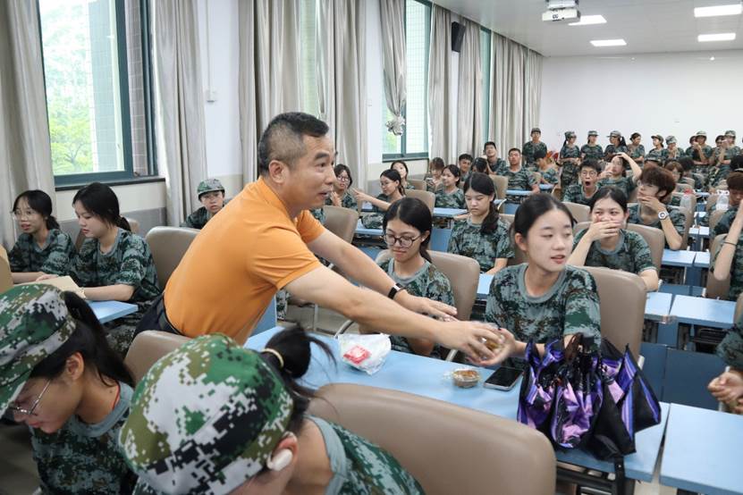 活动当天,公司精心准备了300份月饼,每一份都承载着公司对2024级学子们的美好祝愿。在慰问仪式上,黄庆雄向全体2024级新生致以节日的问候和祝福,并高度赞扬了新生们在军训中的优异表现和顽强拼搏的精神。同时,他强调中秋节是中华民族的传统节日,是团圆和亲情的象征,希望学子们能够在这个特殊的日子里,感受到来自公司大家庭的温暖和关爱。他鼓励学子们要继续发扬军训中的优良作风,努力学习专业知识,为将来成为国家的栋梁之才打下坚实的基础。陈树坤副经理则全程用英文与新生交流了军训的意义,军训能为新生带来使命感(purpose),归属感(belonging),和不一样的经历(story),更能为每一位新生带来超越感(transcendence)。