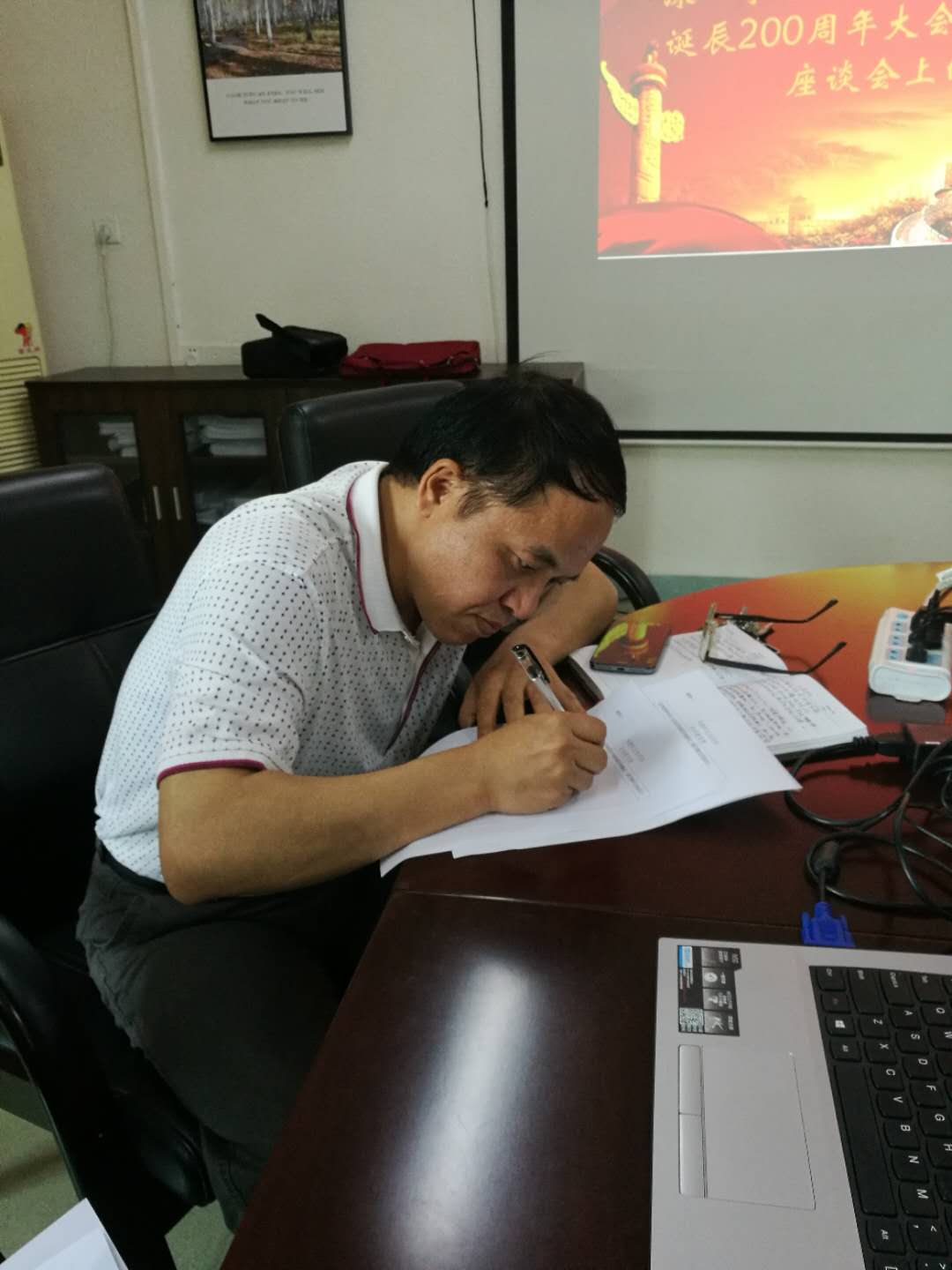 图为黄中习经理以习近平新时代中国特色社会主义思想为引领,为指导党支部开展党建活动而勤奋工作。