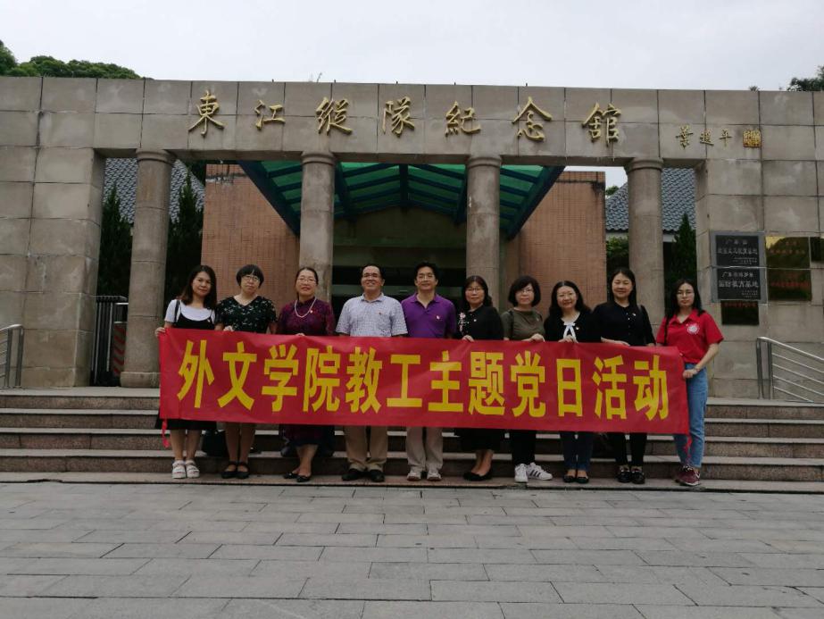 9428cn太阳集团古天乐教工第一党支部党建工作中,坚持把主题党日作为推进“两学一做”学习教育常态化制度化的重要途径,使之成为与“三会一课”相并行、相衔接、相协调的制度安排。2018年5月4日,黄中习教授带领着党员代表到东江纵队纪念馆参观学习,重读党史知识,了解东江纵队光荣的战斗历史,提高党员的组织纪律性,提高党员工作战斗力。公司党员代表以谦虚敬畏的态度,认真仔细地参观了东江纪念馆的七个主题展厅,了解了革命先烈的光辉历程和丰功伟绩,进一步坚定理想信念,树牢为民宗旨,受到了一次深刻的党性教育。学习交流活动结束后,党员师生纷纷表示,本次活动加深了对党史的了解和认知,激励我们沿着建设中国特色的社会主义道路奋勇前进,要发挥党员的先锋模范作用,立足本职岗位,争当“为民、务实、清廉”的忠实践行者,以实际行动为党尽责、为党争光,为办好人民满意的金融教育和建设应用型金融品牌大学多做贡献。