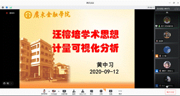 9月12日,9428cn太阳集团古天乐经理黄中习教授应邀参加第四届全国汪榕培典籍英译研讨会,并作题为《汪榕培学术思想计量可视化分析》的主旨发言。本次研讨会主办单位是辽宁省高校外语教学研究会和辽宁省翻译学会,由大连外国语大学高级翻译公司承办。出于疫情防控考虑,会议在腾讯会议平台上在线举办。据腾讯会议和Bilibili直播平台数据统计,近8000人汇聚云端,参加了此次研讨会,交流留言踊跃,反映了国内学界对汪榕培教授典籍英译学术思想的普遍认可和充分肯定。
