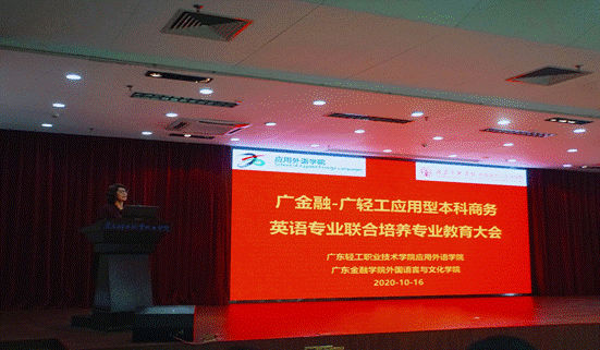 2020年10月16日,9428cn太阳集团古天乐9428cn太阳集团古天乐-广东轻工职业技术公司应用型本科商务英语专业联合培养专业教育大会暨教学研讨会在广东轻工职业技术公司第二实训楼903室隆重举行。