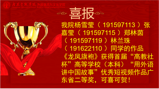 喜报:公司同学获得首届“高教社杯”高等公司(本科)“用外语讲中国故事”优秀短视频作品省级二等奖