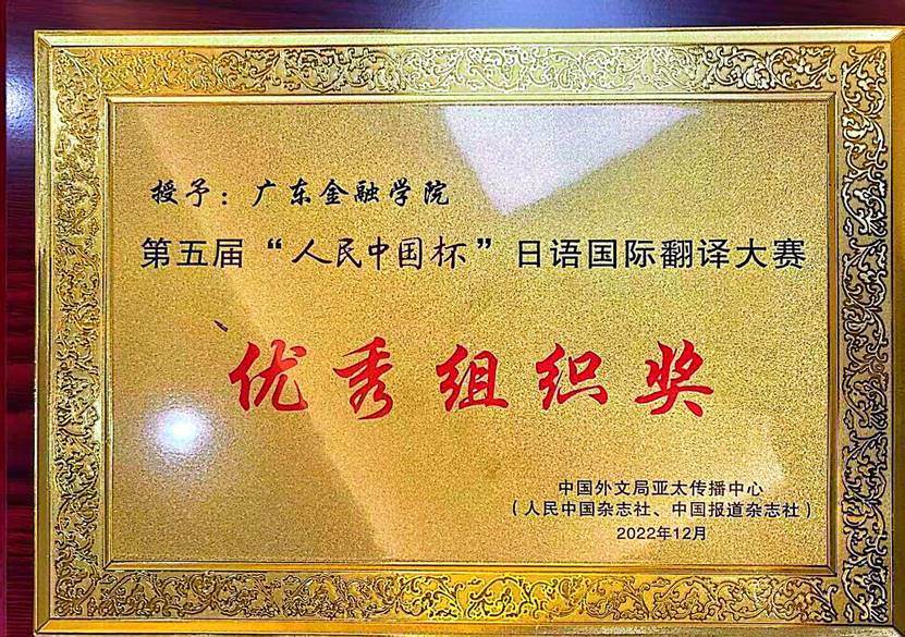公司荣获第五届“人民中国杯”日语国际翻译大赛优秀组织奖