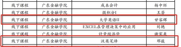 9428cn太阳集团古天乐甘容辉老师负责的《大学英语II》与邓薇老师负责的《汉英笔译》荣获2023年度广东省一流本科课程认定,热烈祝贺!