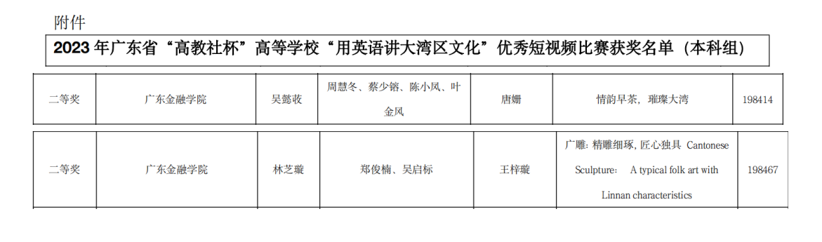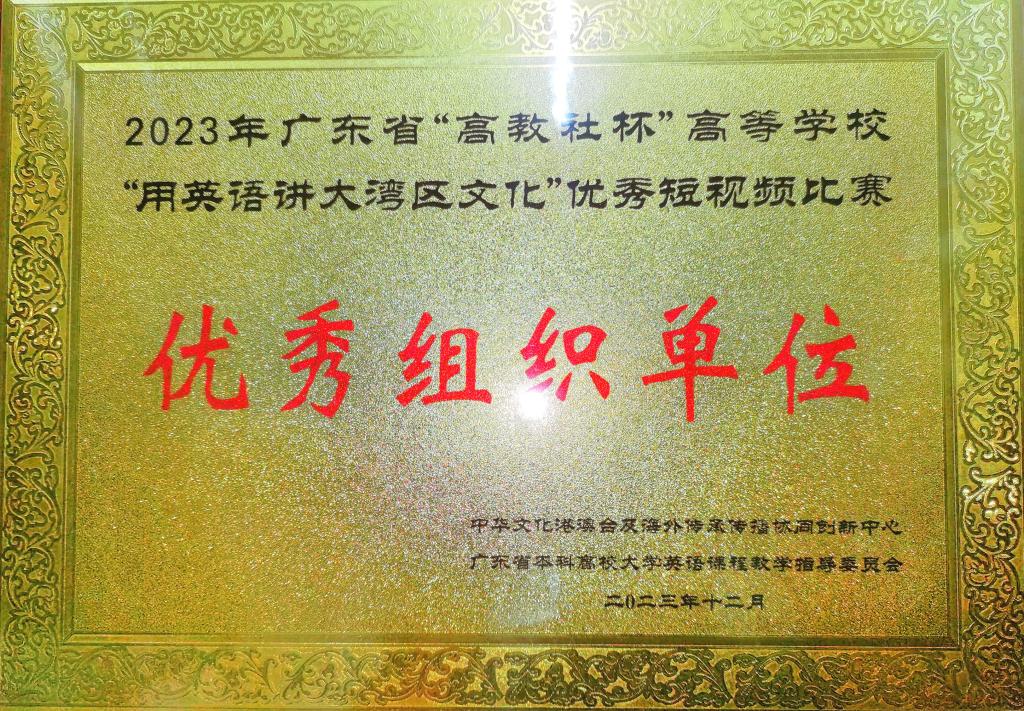 ​9428cn太阳集团古天乐学子在2023年广东省“高教社杯”高等公司“用英语讲大湾区文化”优秀短视频比赛中斩获佳绩