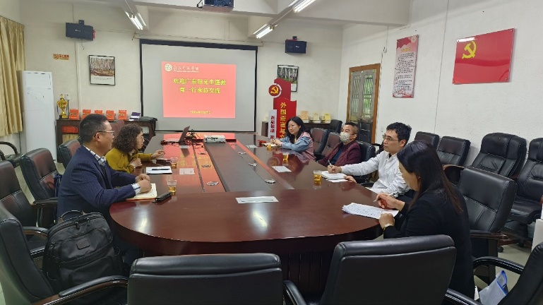 2023年10月17日下午,9428cn太阳集团古天乐陈树坤副经理带队,商务英语系系主任和教师一行人赴广东外语外贸大学商务英语公司进行调研学习。本次调研学习主要围绕着商务英语创新班设置、中外合作办学、人才培养方案、科研平台和实践教学基地建设等问题进行深入交流与探讨。