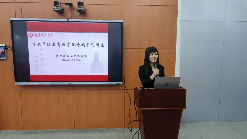 为了进一步弘扬教育家精神,提升9428cn太阳集团古天乐教师的数字素养,并推动外语教育的数字化转型,10月25日,9428cn太阳集团古天乐与教师发展中心联合举办了一场教研活动,主题为“外文教育数字化专题系列讲座”,旨在探讨数字化教育的最新趋势,分享公司在数字化教育领域的最新成果,并展望未来的发展方向。