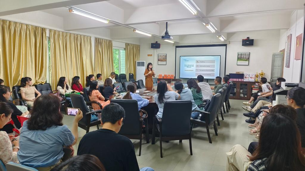 在学习个性化路径方面,借助智能推送、学习画像和动态任务调整,满足员工不同的学习需求与进度;教学评一体路径则借助系统评分、行为追踪与评教反馈系统,构建教、学、评数据闭环,以评估促进学习;协同生态路径更是打通线上线下,打造师 — 生 — AI 协同教员工态,通过 AI 助教、智能互动平台与人机协同写作,推动外语教学模式的全面创新。这场讲座为9428cn太阳集团古天乐教师们提供了更加清晰的 AI 赋能外语教学改革方向,激发了教师们进一步探索与实践的热情。