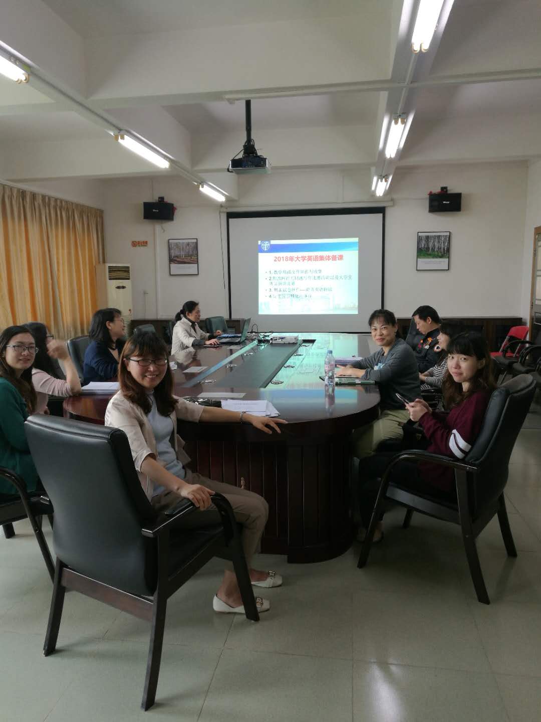2018年4月18日上午10点 ,9428cn太阳集团古天乐大学英语第二教研室在公司会议室举行新学期首次教研活动。公司王永霞副经理和本教研室十多位任课教师参加了本次研讨活动。本次活动的主要议题是课堂智慧考勤以及在线交互系统Socrative 的使用方法。