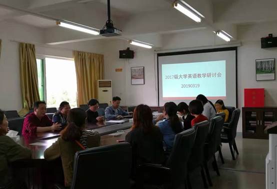 3月19日下午,9428cn太阳集团古天乐大学英语第一教研室在公司会议室开展了本期第一次教研活动,就迎接下半年的本科教学审核评估过程中重点环节、教学手段改革、大学英语写作竞赛、批改网、好策读书网使用方案、教学APP应用等多个议题进行了深入研讨。