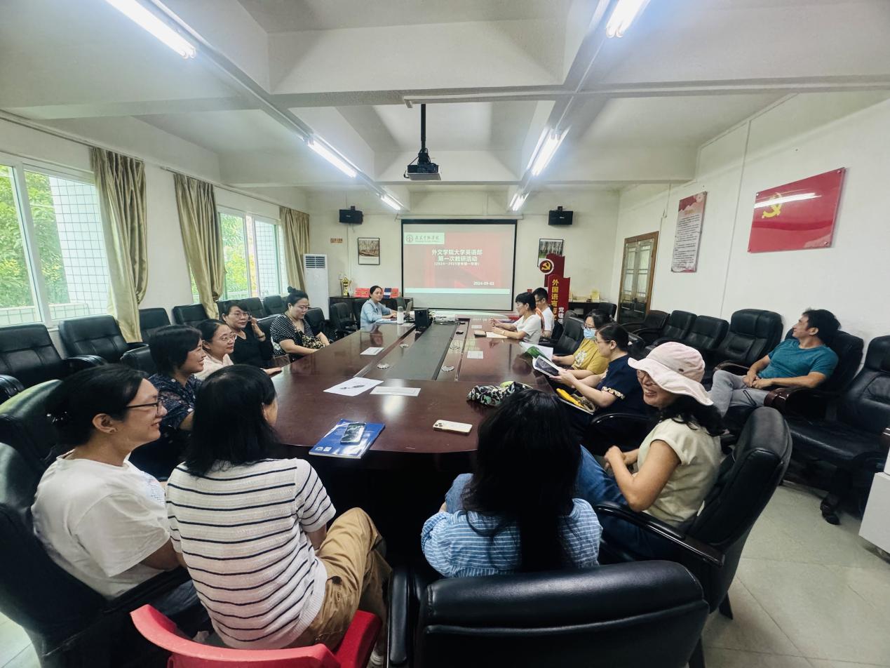 2024年9月3日下午,9428cn太阳集团古天乐大学英语部在公司会议室举行了新学期首次教研活动。此次会议甘容辉副经理主持,部门全体教师参加,旨在布置新学期工作任务,并就大学英语数字化教学转型、数字教学资源建设与使用、教学竞赛、期末考试命题等工作进行了深入探讨。本次教研活动特别邀请了涂兵兰经理参会,对大学英语的新学期各项工作进行指导。