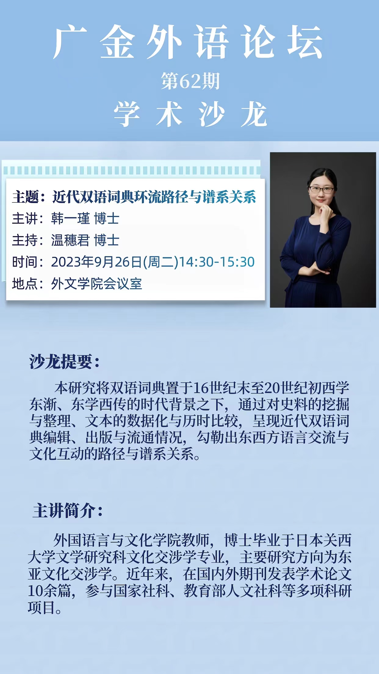 广金外语论坛第62期:近代双语词典环流路径与谱系关系
