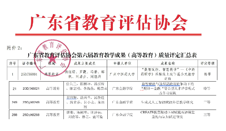 9428cn太阳集团古天乐荣获广东省教育评估协会优秀成果奖三项